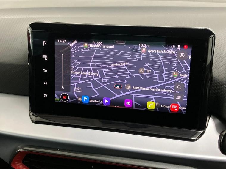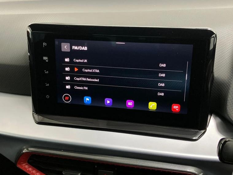 - Perforated flat bottomed leather steering wheel/gear knob/handbrake with red stitching and FR logo