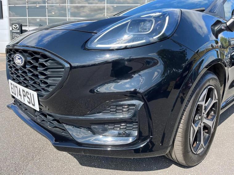 FORD DIRECT + £4050 WORTH OF FACTORY OPTIONS FITTED - PANORAMIC SUN ROOF - DRIVER ASSISTANCE PACK - WINTER PACK - COMFORT PACK - MINI SPARE WHEEL +++ This stunning new model ST-Line hybrid is a Ford Direct car and has covered only 3k miles. As you would expect with a Ford Direct car, it is in exceptional condition all round. It comes with 2 keys, and £4050 worth of factory options fitted + Ford Direct is the safe and easy way to buy a nearly new Ford car, with an exceptional package of support that truly takes the stress out of used car buying. Your Ford Direct car comes with complete peace of mind, including a 2-year unlimited mileage warranty and 2 years Ford Assistance with roadside recovery + £4050 worth of options includes a Panoramic Sun Roof, the Driver Assistance Pack (Intelligent Adaptive Cruise Control (ACC) with Evasive Steering, Blind Spot Information System (BLIS) with Lane Change Warning and Cross-Traffic Alert, Lane Change Aid, 360 degree camera with front and rear parking sensors), the Comfort Pack (Power Lift Tailgate, 4-Way Manual Passenger Seat, Keyless Entry, Keyless Start and Wireless Charger), the Winter Pack (Front Heated Seats and Heated Steering Wheel), and a Mini Spare Wheel. Service intervals are 2yrs/18k miles, so the first service is not due until September 2026 or 18k miles, whichever comes first. +++ The new Ford Puma showcases an athletic appearance and a roomier cabin that provides more comfort and practicality to driver...