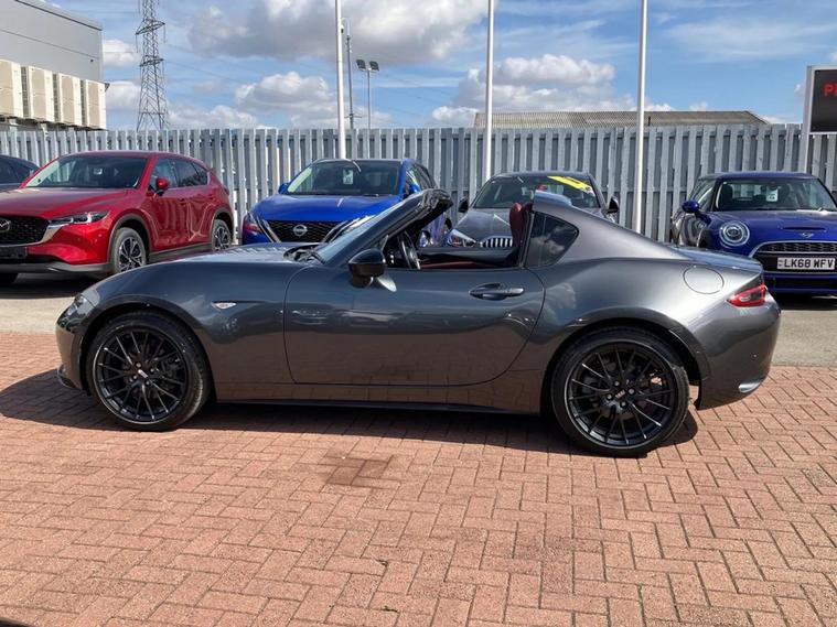 This 2020 Mazda MX-5 RF SKYACTIV-G GT Sport Tech is a remarkable example, boasting exceptionally low mileage for its age, having covered just 15, 038 miles. This particular model, registered in 2020, is equipped with the desirable GT Sport Tech trim and powered by a responsive 2.0 litre petrol engine. It meets the Euro 6 emission standards, reflecting its modern and efficient design. Notable features include a reversing camera for easier parking, complemented by rear parking assistance, and a blind spot monitoring system with rear cross traffic alert for enhanced safety. The convenience of smart keyless entry is also a standard inclusion. Experience the thrill of driving with this Mazda MX-5 RF, which achieves an impressive 0-62mph in just 6.8 seconds, demonstrating its sporty performance. This acceleration figure is a key indicator of how this vehicle outperforms many others in its class. Furthermore, it offers excellent fuel economy, achieving up to 41 miles per gallon, making it an economical choice for both city driving and longer journeys. The low CO2 emissions also highlight its environmental consideration, providing a balance of performance and efficiency.