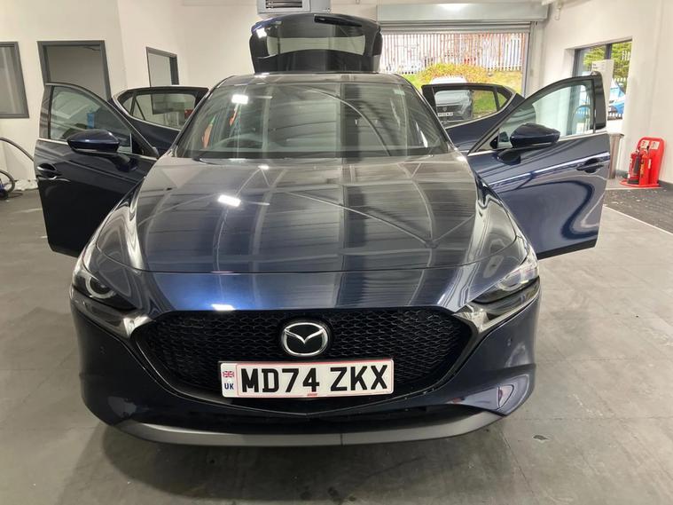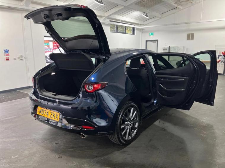 This 2025 Mazda Mazda3 e-SKYACTIV-G Exclusive-Line offers excellent peace of mind with its MOT valid until January 2028. This stylish hatchback is equipped with a responsive 2.5L petrol engine, meeting Euro 6 emissions standards. You'll appreciate the convenience of Smart Keyless Entry and the added safety of Blind Spot Monitoring with Rear Cross Traffic Alert. Manoeuvring is made easier with the integrated Reversing Camera and rear parking assistance, while Mazda Radar Cruise Control enhances your driving experience on longer journeys. The Mazda3 Exclusive-Line stands out with its impressive acceleration, reaching 0-62mph in just 9.5 seconds, demonstrating its capable performance. This model also benefits from a low insurance group, making it an economical choice for many drivers. Furthermore, the generous boot space provides ample room for shopping, luggage, or sports equipment, indicating its practicality for everyday use and leisure activities.