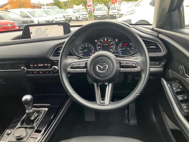 This one owner 2022 Mazda CX-30 e-SKYACTIV X Sport Lux presents an exceptional opportunity with its remarkably low mileage of just 9933 miles. This stylish SUV, powered by a 2.0L petrol engine, meets Euro 6 emissions standards. The Sport Lux trim level ensures a premium experience, enhanced by notable features such as Blind Spot Monitoring with Rear Cross Traffic Alert, a reversing camera with parking assistance, and front and rear parking sensors. Smart keyless entry adds further convenience to this well appointed vehicle. The Mazda CX-30 e-SKYACTIV X Sport Lux offers impressive efficiency and performance, achieving a fuel economy of 50 mpg, which is a significant advantage over many other vehicles in its class. Its low CO2 emissions and low insurance group also contribute to lower running costs, making it an economical choice. Furthermore, its acceleration from 0 to 62 mph in just 8.3 seconds demonstrates a responsive and engaging driving experience.