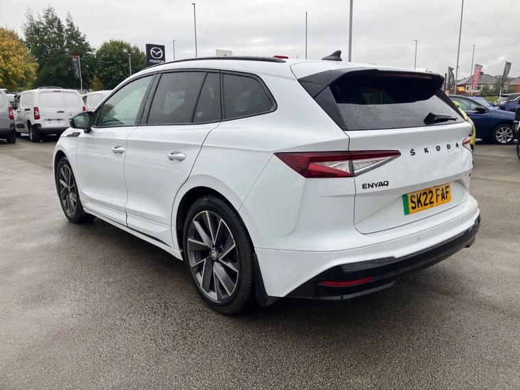 This 2022 Skoda Enyaq 80x SportLine is a superb example, having had only one owner since new. This electric vehicle boasts a substantial 82 kWh battery, offering a maximum range of 311 miles when new, making it ideal for both daily commutes and longer journeys. Its Four Wheel Drive system ensures confident handling in various conditions. The SportLine trim signifies a sporty aesthetic and feel, and you'll appreciate the generous boot space for all your luggage. Experience impressive performance with the Enyaq 80x SportLine, accelerating from 0 to 60mph in just 6.7 seconds, a notable advantage over many comparable vehicles. Charging is convenient, with a full charge at home using a 7kW charger taking approximately 13 hours, and a rapid charge from empty to 80% achievable in around 40 minutes at a public charging station. This Enyaq is ready for the road, with its MOT valid until March 2026, providing peace of mind for the new owner.