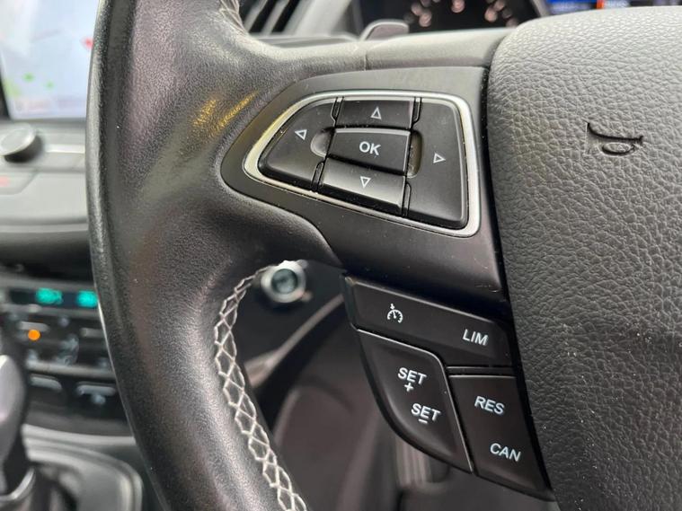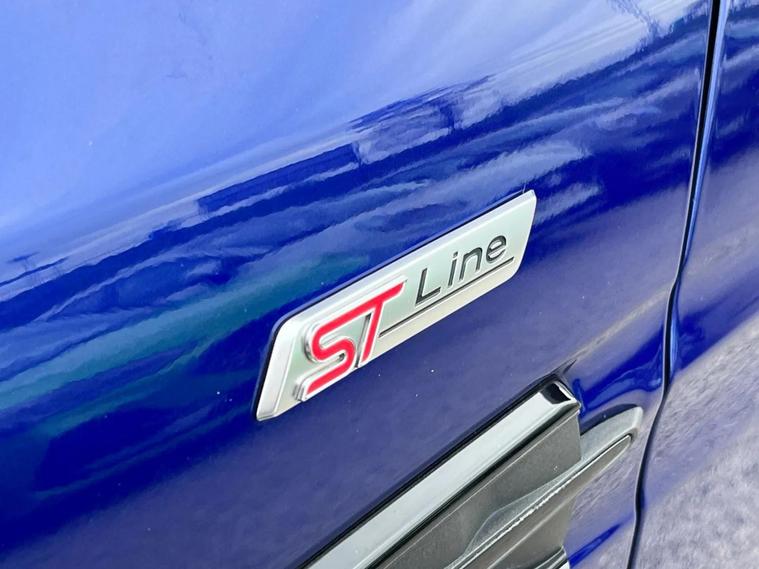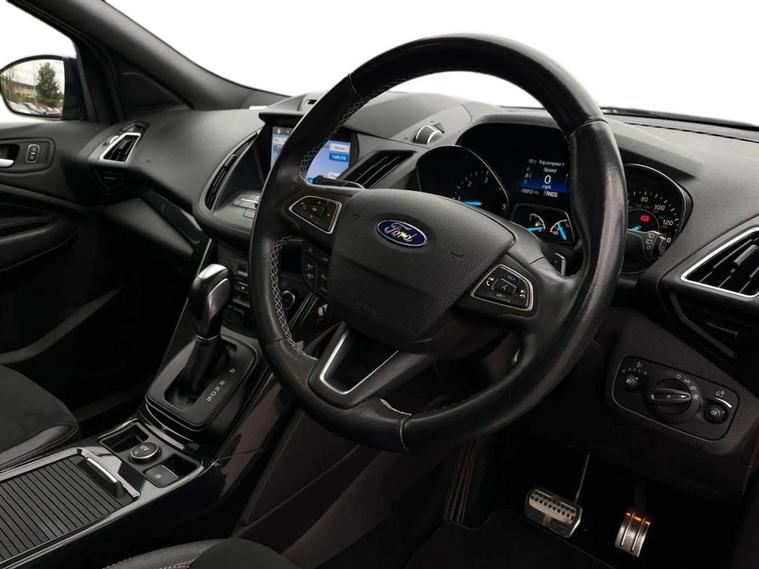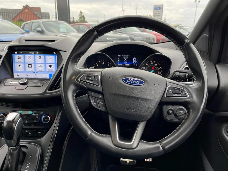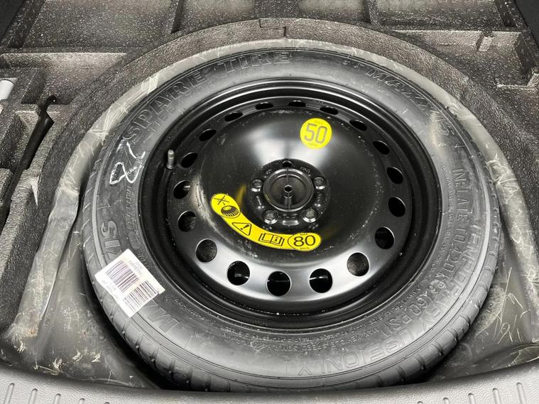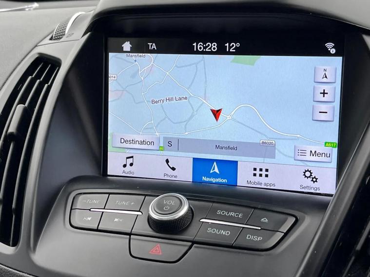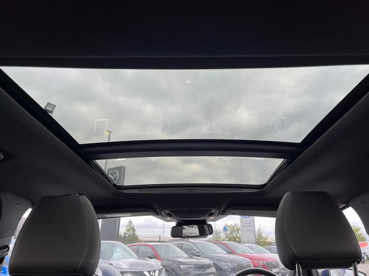 - Flat bottomed leather steering wheel with red stitching + gear knob