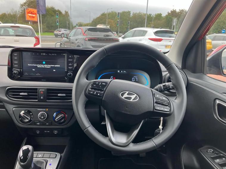 With an incredibly low mileage, this 2025 Hyundai i10 Advance presents an exceptional opportunity. This Euro 6 compliant 1.0L petrol model boasts Hyundai warranty until 2030, offering peace of mind for years to come. Enhancing your driving experience are the convenient rear parking sensors, complete with parking assistance, and seamless Bluetooth connectivity featuring voice recognition. This i10 stands out with its impressive fuel economy, achieving a remarkable 54 miles per gallon, which is better than many similar vehicles. Furthermore, its low insurance group rating indicates that running costs will be kept to a minimum, making it an economical choice for everyday driving.