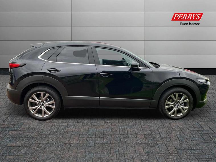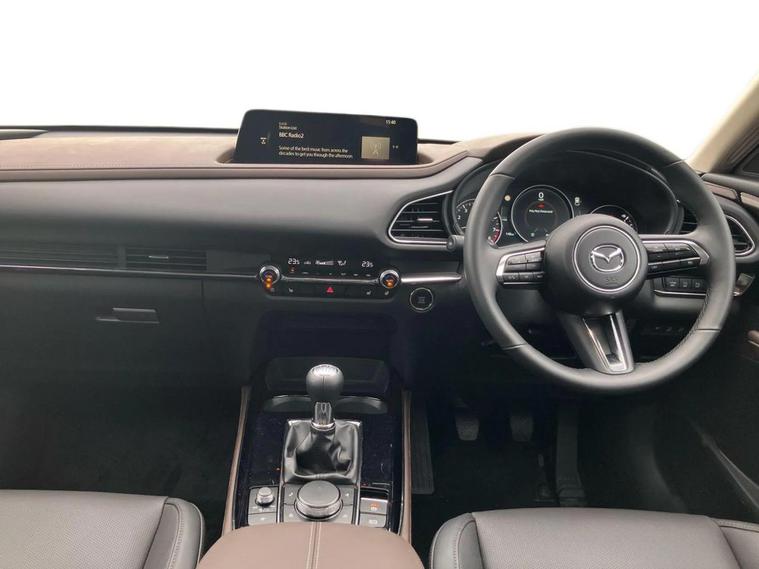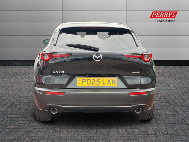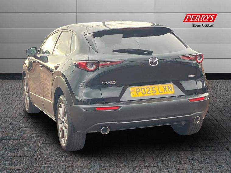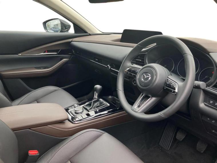 This 2025 Mazda CX-30 e-SKYACTIV X Exclusive-Line boasts an MOT valid until June 2028, offering excellent peace of mind. This stylish SUV features a 2.0L petrol engine and meets Euro 6 emissions standards. The Exclusive-Line trim comes equipped with a suite of advanced driver aids, including Blind Spot Monitoring with Rear Cross Traffic Alert and Blind Spot Assistance, ensuring safer journeys. Navigating tight spaces is made effortless with front and rear parking sensors, a reversing camera, and parking assistance systems. Smart keyless entry adds a touch of convenience to your daily driving experience. The Mazda CX-30 e-SKYACTIV X Exclusive-Line stands out with its impressive fuel economy, achieving up to 49 mpg, which is better than many vehicles in its class. Its low CO2 emissions and low insurance group further contribute to its cost effectiveness. For those who appreciate performance, this model accelerates from 0-62mph in a brisk 8.3 seconds, demonstrating a responsive and engaging driving experience.