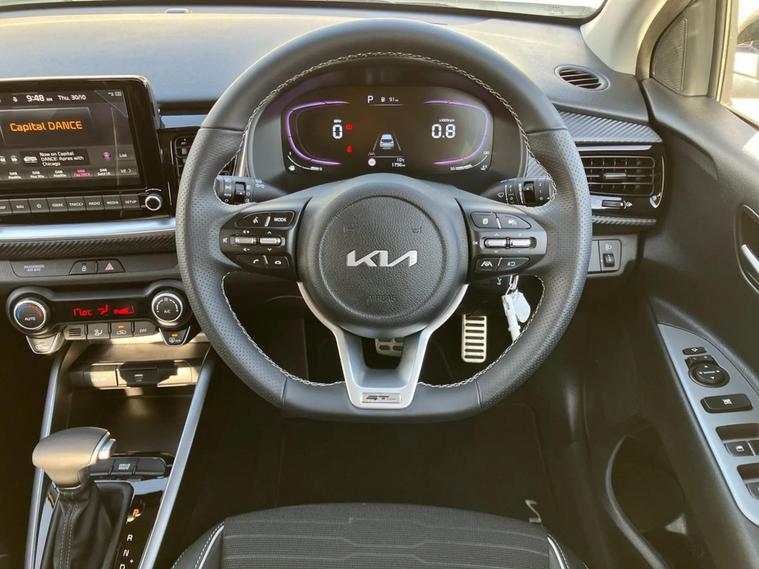 This 2025 Kia Stonic T GDi GT Line presents an exceptional opportunity with an incredibly low mileage of just 1258 miles (Please ring for the latest mileage). This Euro 6 compliant model boasts a 1.0 litre petrol engine and comes in the desirable GT Line trim. For your peace of mind, the MOT is valid until July 2028. Inside, you'll find a range of thoughtful features including LED position lights, an adjustable cargo floor for versatile storage, and tinted glass for added privacy. The solar windshield glass helps to regulate cabin temperature, while the integrated Bluetooth with music streaming ensures seamless connectivity on every journey. The Kia Stonic T GDi GT Line stands out with its impressive fuel economy of 47 mpg, demonstrating its efficiency compared to other vehicles in its class. Furthermore, its low CO2 emissions contribute to a more environmentally conscious drive. This model also benefits from a low insurance group, which can help to reduce your running costs. With its combination of advanced features, exceptional condition, and cost saving highlights, this Kia Stonic offers a compelling package for any discerning driver.