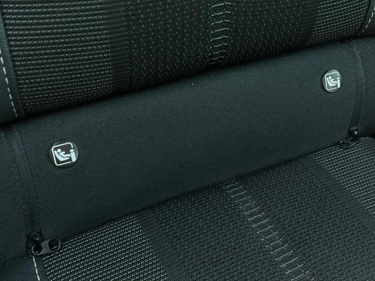 - Fabric/leather upholstery with jet black fabric side bolsters