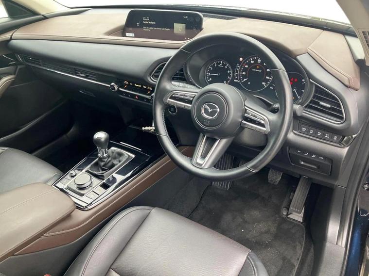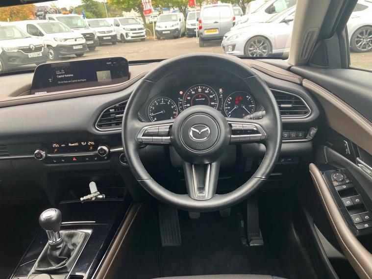 This one owner 2022 Mazda CX-30 e-SKYACTIV G GT Sport Tech is a truly exceptional example, boasting incredibly low mileage for its age at just 6896 miles and with a full Mazda service history. This Euro 6 compliant 2.0L petrol model, presented in the desirable GT Sport Tech trim, offers a refined driving experience. It comes with an MOT valid until January 2026, providing peace of mind. Notable features include Smart Keyless Entry for effortless access, Blind Spot Monitoring with Rear Cross Traffic Alert to enhance safety, a Heated Steering Wheel for comfort on colder days, and Front and Rear Parking Sensors to aid manoeuvrability. The highlights of this Mazda CX-30 demonstrate its superior offering compared to other vehicles in its class. With an impressive fuel economy of 48 mpg, it presents a cost effective choice for your journeys. Furthermore, its low insurance group and low CO2 emissions contribute to lower running costs, making it an economically sound and environmentally conscious option.