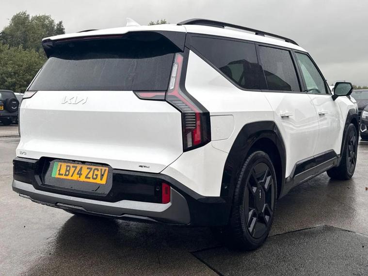 This 2025 Kia EV9 GT-Line S is a remarkable example, boasting an exceptionally low mileage of just 4323 miles for its age and having had only one owner. This electric, four wheel drive SUV offers a spacious interior with seven seats, making it ideal for families or those needing extra versatility. Its substantial 100 kWh battery provides a maximum range of 313 miles when new, and for peace of mind, the MOT is valid until January 2028. Notable features include Navigation Based Smart Cruise Control with Stop and Go Functionality, a 360 Degree Around View Monitor for effortless parking, and a Wireless Mobile Phone Charger. You'll also appreciate the comfort of a Heated Steering Wheel and the advanced Electronic Rear View Mirror with Full Display. The Kia EV9 GT-Line S stands out with its impressive performance and charging capabilities. The 0-62mph acceleration in just 5.3 seconds highlights its dynamic driving experience, offering a responsiveness that surpasses many similar vehicles. When it comes to recharging, the fastest public charging time can take the battery from empty to 80% in a swift 27 minutes, a significant advantage for longer journeys. While a full charge at home using a 7kW charger takes approximately 45 hours and 5 minutes, the rapid public charging option ensures convenience. Furthermore, this capable SUV has a towing weight of 2500 kg, adding to its practicality for a variety of needs.