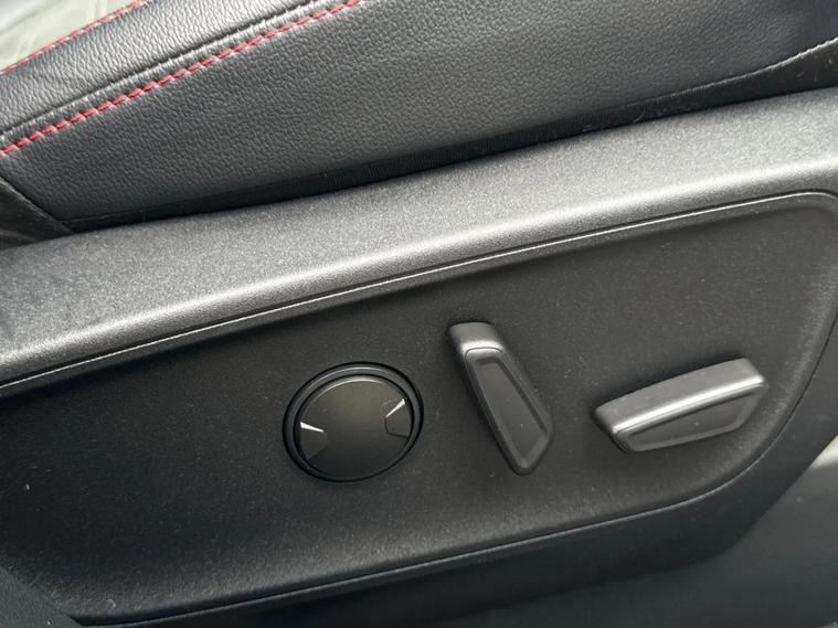 - Partial premium touch sensico leather upholstery with black cloth inserts and red stitching