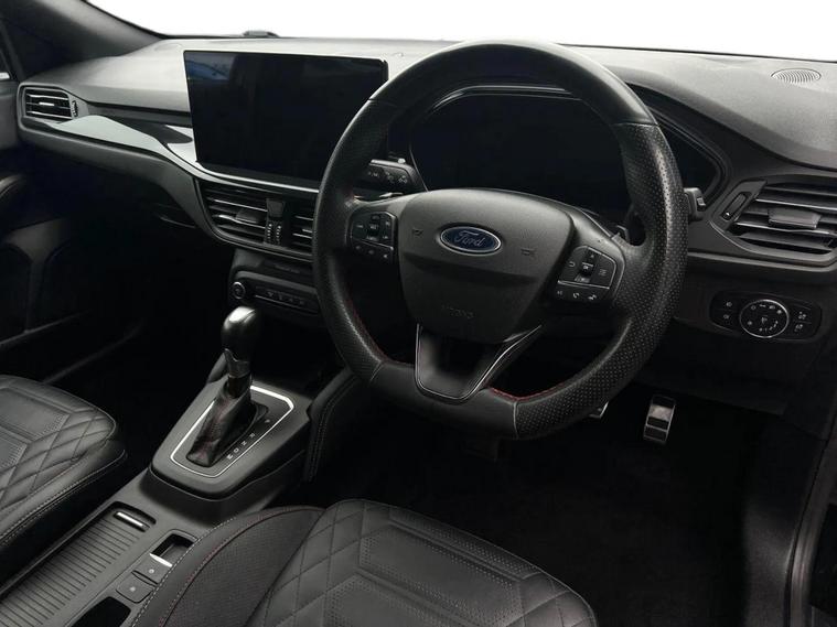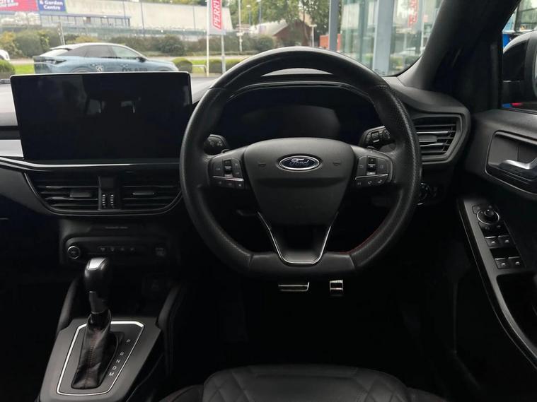 This 2022 Ford Focus ST Line Vignale is a superb example, having been owned by just one careful keeper since new. This particular model boasts the efficient 1.0L Petrol Hybrid engine, meeting the Euro 6 emission standards and offering peace of mind for the next owner. The ST Line Vignale trim ensures a premium experience, blending sporty aesthetics with refined comfort. This fantastic vehicle also comes with a range of features that elevate the driving experience such as a heated steering wheel, electric and heated seats, heated windscreen, satellite navigation, lane keep assist, wireless smartphone charging, Apple CarPlay/Android Auto, pre-collision assist, B&O Sound system and much more. You'll appreciate the generous boot space, making this Focus incredibly practical for everyday use, whether it's for shopping trips or family holidays. The combination of its low owner count, long MOT, and the advanced hybrid technology sets this Ford Focus apart from others on the market, offering a compelling package of style, efficiency, and reliability for discerning drivers.