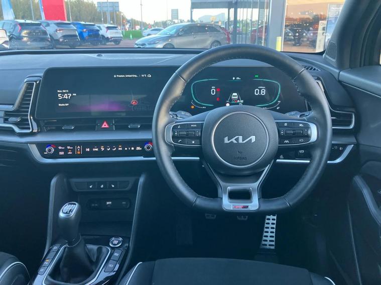 This 2025 Kia Sportage GT Line offers exceptional peace of mind with its Kia warranty valid until April 2032. This stylish SUV features a 1.6 litre petrol hybrid engine, meeting Euro 6 emission standards. Inside, you'll find distinctive GT Line interior styling, complemented by alloy pedals and all round height adjustable headrests. The cabin is further enhanced by a sophisticated black headlining, creating a premium feel. Designed for practicality and ease of use, this Sportage boasts front and rear parking sensors, including dedicated parking assistance for both front and rear, making manoeuvring in tight spaces straightforward. You'll also appreciate the generous boot space, perfect for luggage or shopping. Furthermore, this model benefits from a low insurance group, indicating it is more economical to insure than many comparable vehicles.
