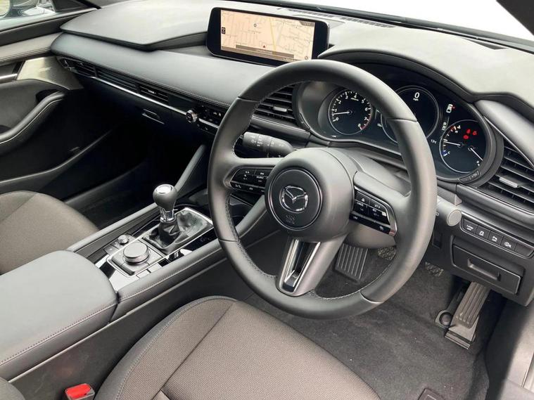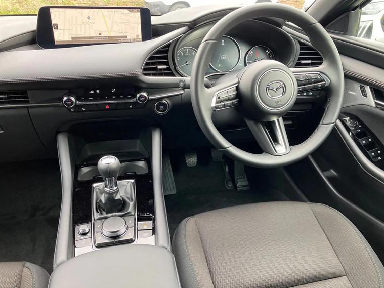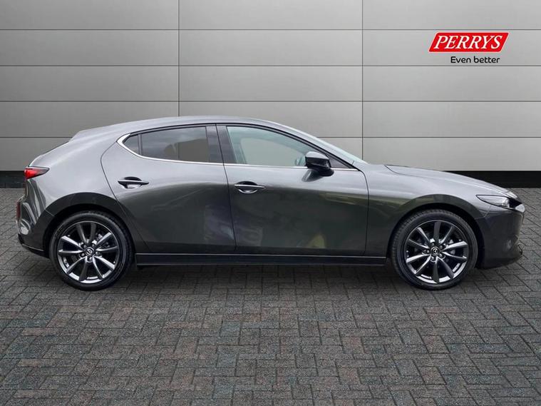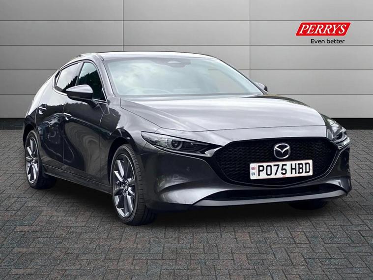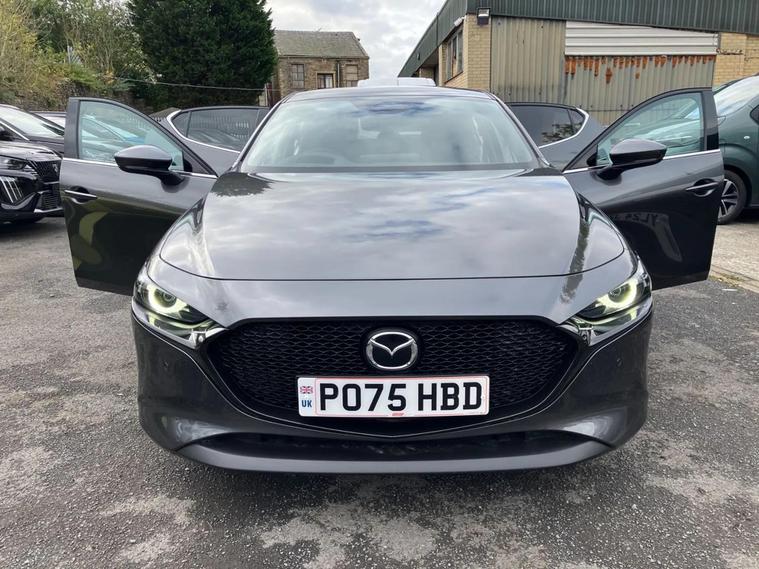This 2025 Mazda3 e-SKYACTIV-G Exclusive-Line boasts an MOT valid until September 2028, offering you peace of mind for years to come. This stylish hatchback is equipped with a responsive 2.5L petrol engine, meeting Euro 6 emission standards. Key features designed for your convenience and safety include Smart Keyless Entry, a Reversing Camera with parking assistance, and Mazda Radar Cruise Control for effortless journeys. You'll also benefit from Blind Spot Monitoring with Rear Cross Traffic Alert, enhancing your awareness on the road. Experience the impressive acceleration of the Mazda3, reaching 0-62mph in just 9.5 seconds, a performance that sets it apart from many in its class. The generous boot space ensures you have ample room for all your luggage or shopping needs. These highlights demonstrate how this Mazda3 Exclusive-Line offers a superior driving experience, combining performance, practicality, and advanced technology for everyday driving.