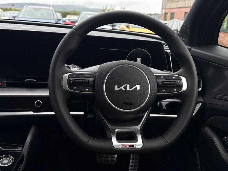 This 2025 Kia Sportage T GDi GT Line S offers exceptional peace of mind with its MOT valid until September 2028. This stylish SUV is equipped with a 1.6 litre petrol hybrid engine, meeting Euro 6 emission standards. The GT Line S trim level ensures a premium experience, complemented by advanced features designed for convenience and safety. Navigate tight spaces with ease thanks to the front and rear parking sensors, further enhanced by a 360 degree around view monitor. Enjoy the open air with the panoramic sunroof, complete with tilting and sliding functions and an electric blind. For added comfort during colder months, the heated steering wheel is a welcome addition, while the dual LED headlights with adaptive driving beam provide excellent visibility. The Sportage also boasts generous boot space, making it a practical choice for all your needs.