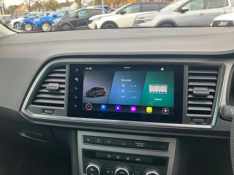 This 2025 SEAT Ateca TSI EVO FR presents this Euro 6 compliant 1.5 litre petrol model, finished in the sporty FR trim, offers a compelling blend of performance and practicality. It benefits from a MOT valid until June 2028, providing peace of mind for years to come. Inside, you'll find convenient features such as keyless entry, a wireless phone charger, and dual zone climate control, ensuring comfort and ease on every journey. The SEAT Ateca TSI EVO FR is designed to impress, and its performance figures highlight this. Achieving 0-62mph in a swift 9.0 seconds, it offers responsive acceleration that sets it apart from many other vehicles in its class. Furthermore, the generous boot space ensures you have ample room for luggage, shopping, or sports equipment, making it a versatile choice for families and active individuals alike.