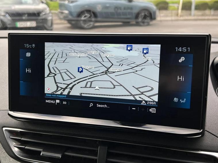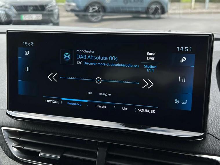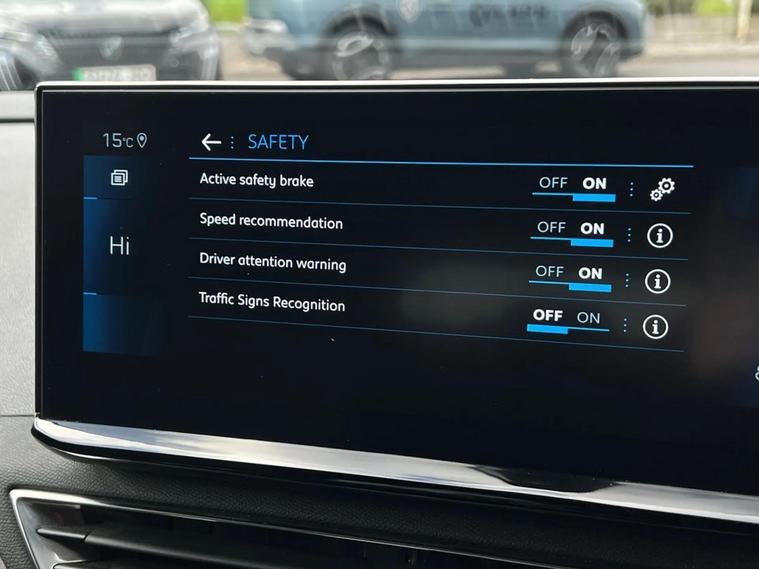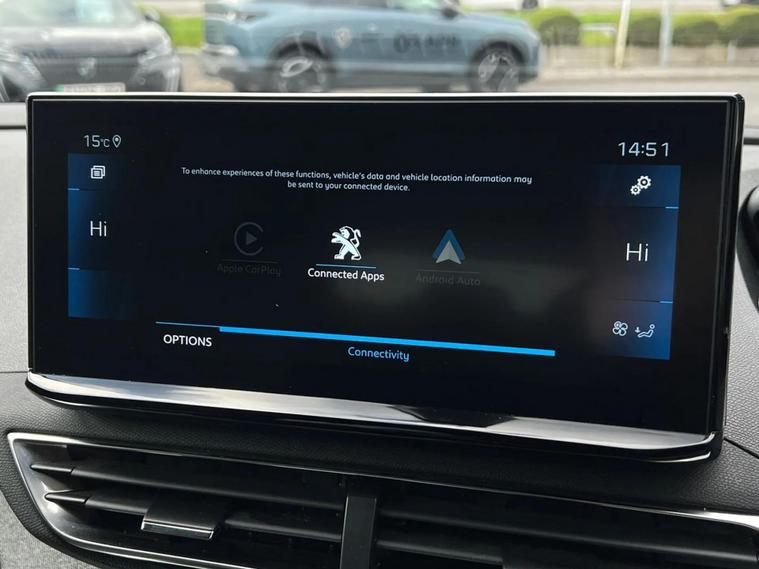 - Peugeot i-cockpit with configurable 12.3 headup digital instrumental panel and compact sports steering wheel