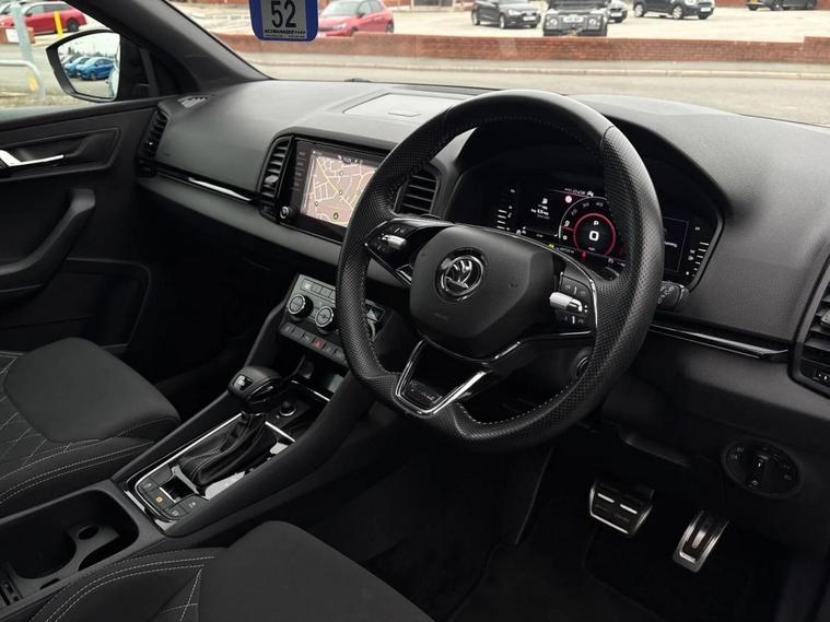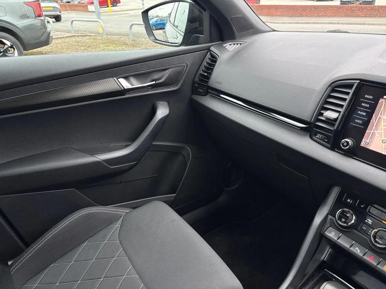 With only one two from new and a remarkably low mileage of 32943 miles for its 2020 registration, this Skoda Karoq TSI SportLine presents an exceptional find. This Euro 6 compliant model boasts a responsive 1.5 litre petrol engine, offering an engaging 0-60mph acceleration in just 8.7 seconds. Inside, you'll appreciate the advanced Virtual Cockpit, providing clear and customisable driver information, alongside the convenience of Traffic Sign Recognition to keep you informed of road conditions. The SportLine trim ensures a stylish and well equipped experience, further enhanced by wireless charging capabilities for your compatible devices, eliminating the need for a separate aerial. This Skoda Karoq is designed to impress with its practicalities and performance. Its large boot space makes it ideal for families, shopping trips, or weekend getaways, offering ample room for all your luggage. Furthermore, its placement in a low insurance group indicates that running costs are kept impressively low, making it an economical choice for many drivers. With an MOT valid until August 2026, this well maintained vehicle offers peace of mind and is ready for its next adventure.