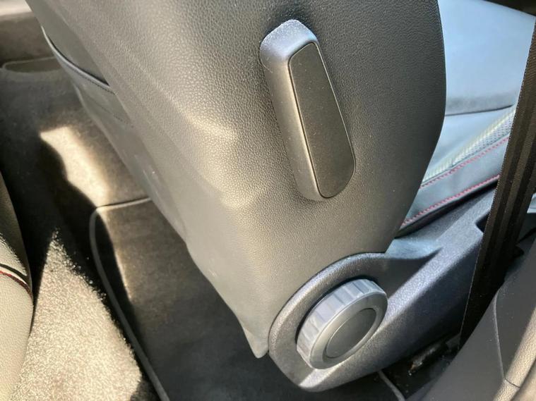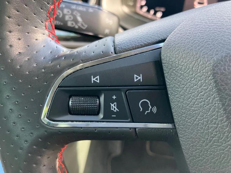 - Flat bottomed perforated leather steering wheel with red stitching and FR logo