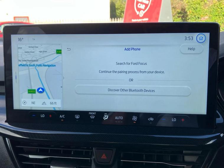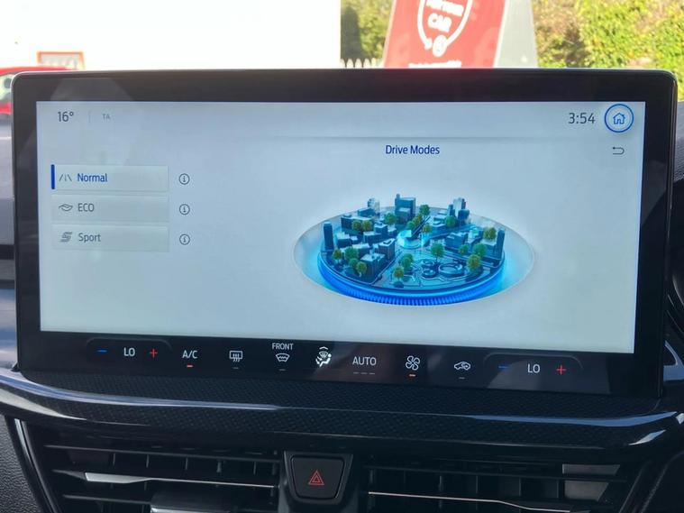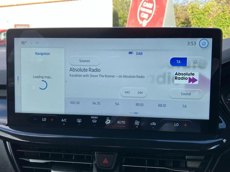 - 3 spoke flat bottomed leather steering wheel with red stitching