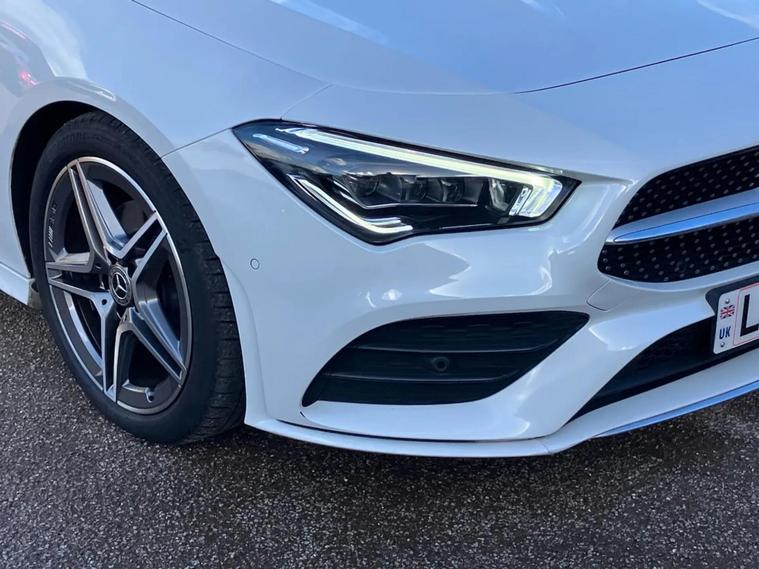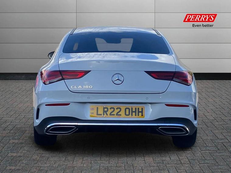 - AMG body styling with AMG front apron and rear apron and visible exhaust tailpipe in chrome trim elements
