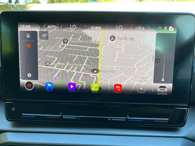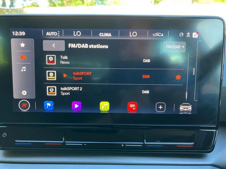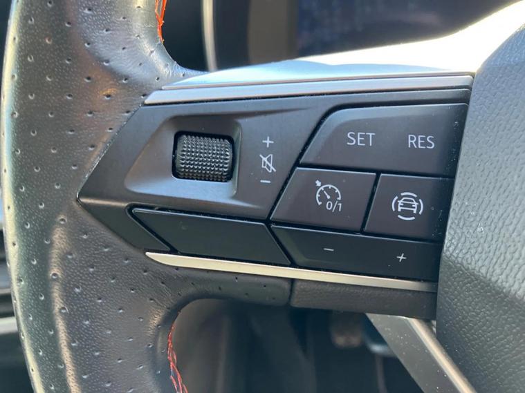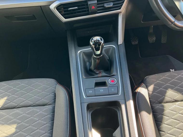 - Flat bottomed perforated leather steering wheel with red stitching and FR logo and leather gear stick