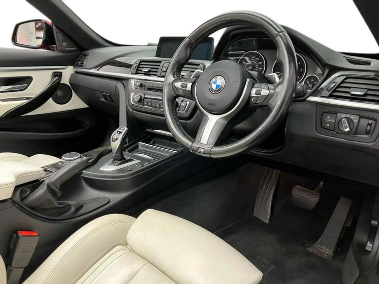 15 OPTIONAL EXTRAS IN TOTAL! These include the M Sport Plus Package, Automatically Dimming Folding Door Mirrors, Wing Deflector, Air Breather, Convertible Comfort Package, Individual Extended Merino Leather - Opal White with Black Interior, Warm Air collar, Heated Steering Wheel, M Sport Braking System, plus more equating to over £7000! This 2015 BMW 4 Series 430d M Sport boasts exceptionally low mileage for its age, having covered just 47, 000 miles. This impressive coupe, finished in the desirable M Sport trim, is powered by a potent 3.0L Diesel Engine and meets Euro 6 emissions standards. With only two previous owners and an MOT valid until June 2026, its provenance is excellent. Inside, you'll find a luxurious Individual Extended Merino Leather interior in Opal White with a Black contrast, complemented by Fineline Anthracite Wood trim. Comfort is further enhanced by a heated steering wheel and automatically dimming, folding door mirrors, while the Harman Kardon speaker system delivers an immersive audio experience. The performance of this 430d M Sport is truly engaging, capable of accelerating from 0-62mph in a swift 5.9 seconds, demonstrating its dynamic capabilities. These highlights, combined with its low insurance group, suggest a vehicle that offers a superior driving experience and potentially lower running costs compared to similar models. This BMW 4 Series represents a compelling blend of performance, luxury, and practicality. Previously serviced on 13/4/2017 at...
