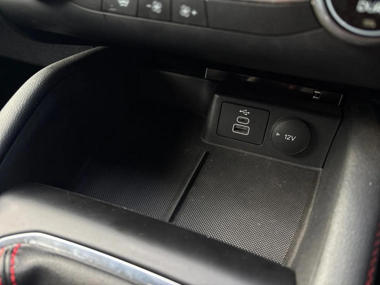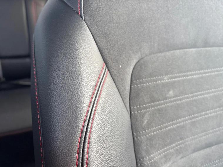 - Partial premium touch sensico leather upholstery with black cloth inserts and red stitching