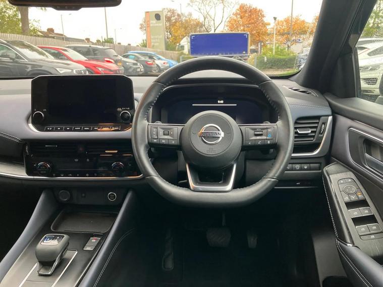 With MOT valid until May 2026, this 2022 Nissan Qashqai DIG-T Tekna offers excellent peace of mind. This Euro 6 compliant 1.3L Petrol Hybrid model has covered a low mileage. It comes equipped with Intelligent Key for keyless entry, a rear view camera to aid parking, and an advanced windscreen head up display for convenient information. You'll also appreciate the comfort of a heated steering wheel and the safety of Blind Spot Warning. This Qashqai Tekna stands out with its impressive acceleration, reaching 0-62mph in just 9.2 seconds, demonstrating its responsive performance. The large boot space is a practical advantage, offering ample room for shopping or luggage, making it more versatile than many similar vehicles. Furthermore, its low insurance group rating indicates that running costs are likely to be more affordable compared to other cars in its class.