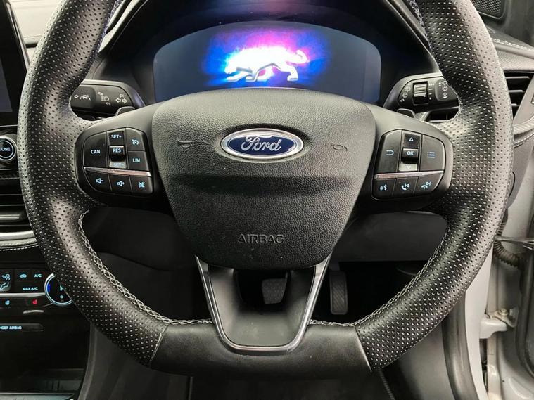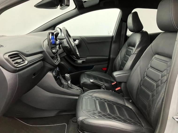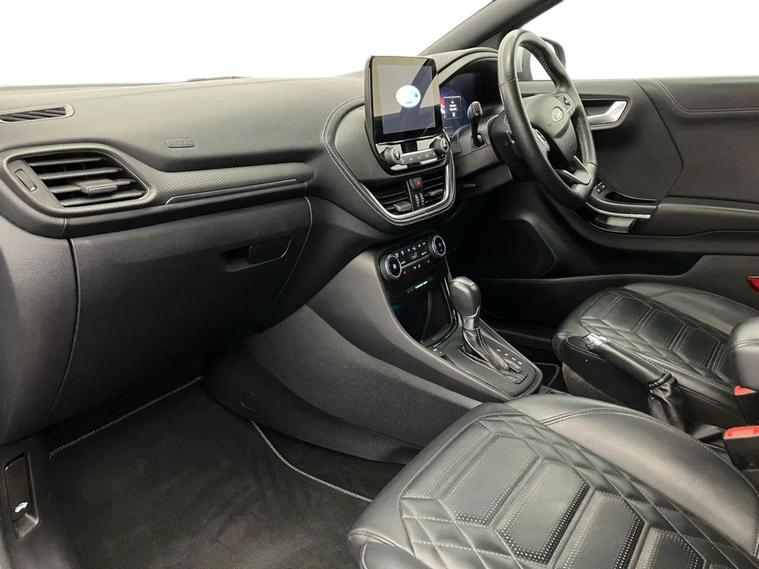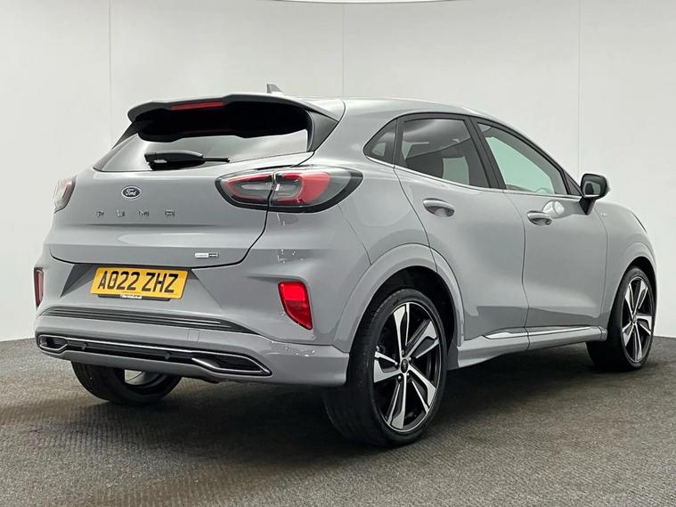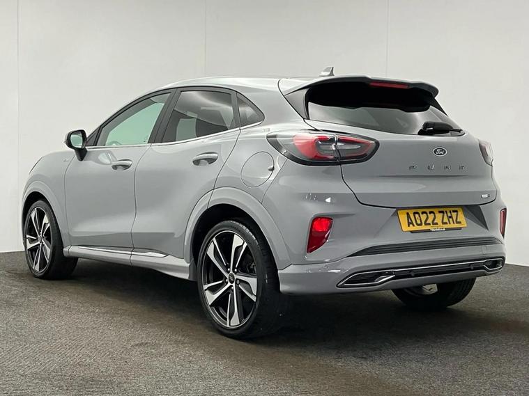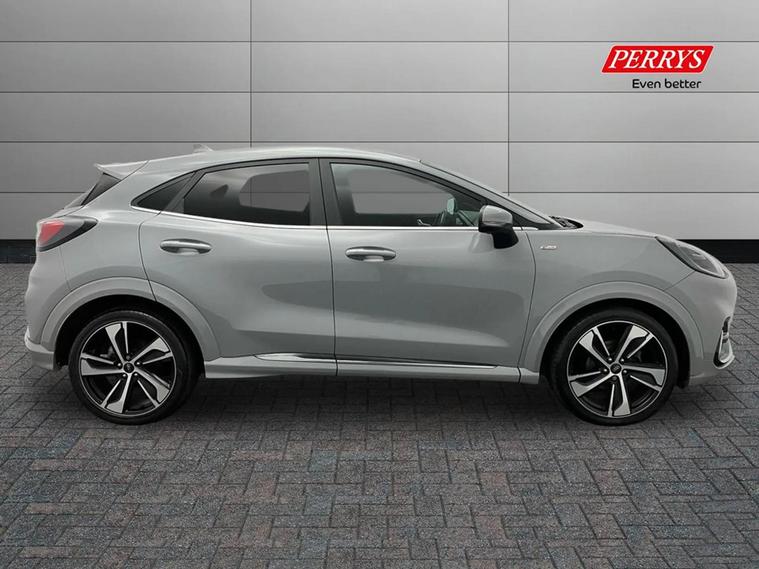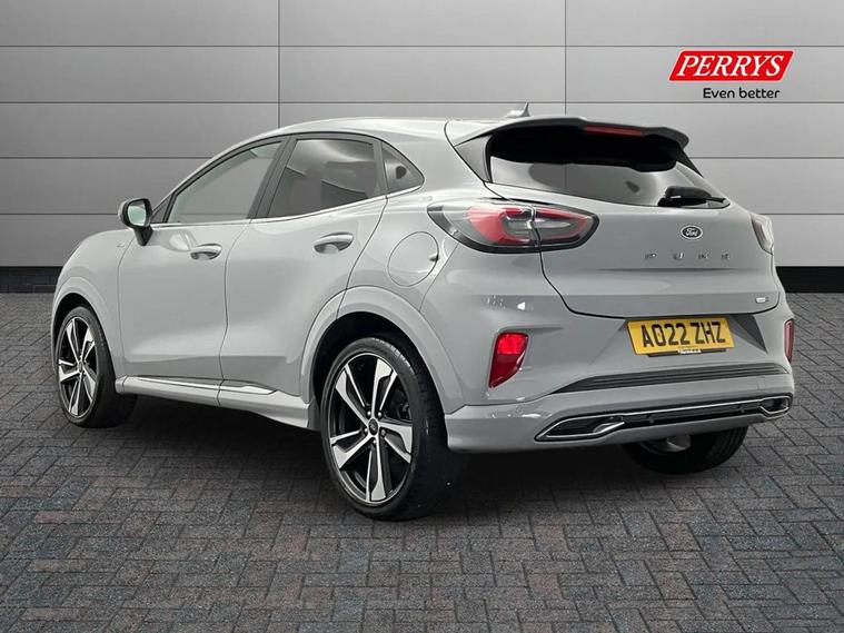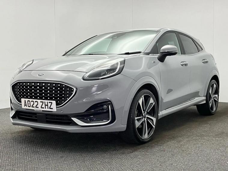 This 1 owner, full service history Puma finished in Matter Grey comes with a Handsfree Power Tailgate, upgraded 19" Alloy Wheels and Premium Sensico leather upoholstery - all as optional extras. This 2022 Ford Puma ST-Line Vignale offers excellent peace of mind with its MOT being renewed by us at Perrys Doncaster. This stylish compact SUV is equipped with a responsive 1.0L Petrol Hybrid engine, meeting Euro 6 emission standards. Its ST-Line Vignale trim ensures a premium feel, complemented by striking 19 inch alloy wheels in a Matt Black Machined Finish and Fixed LED Signature Headlamps that provide excellent visibility. Experience dynamic performance with the Ford Puma, capable of accelerating from 0 to 62mph in just 8.7 seconds, demonstrating its agility compared to other vehicles in its class. The convenience of a Handsfree Power Tailgate adds a touch of modern practicality, making loading and unloading effortless. This 2022 model combines sporty aesthetics with efficient hybrid technology and desirable features for a refined driving experience.