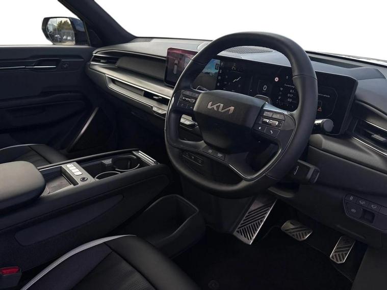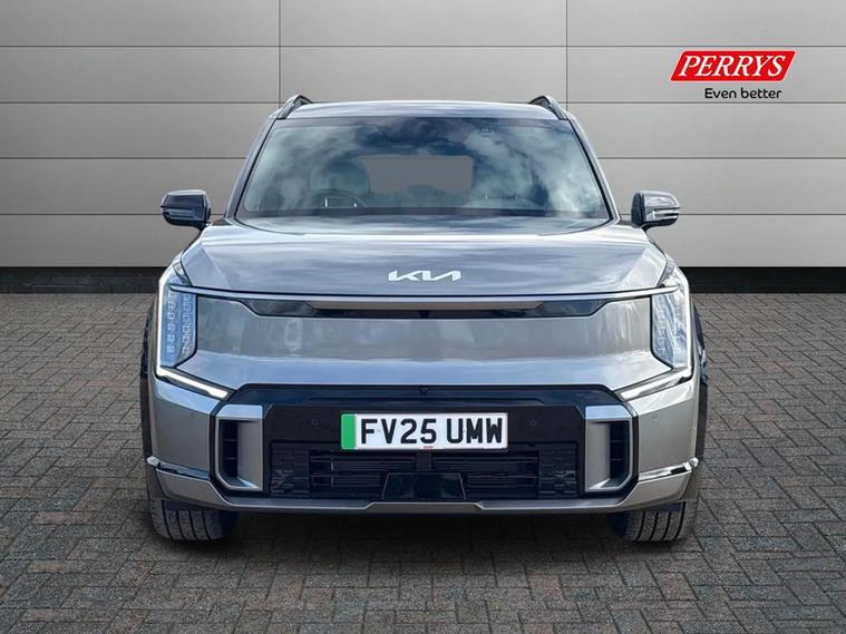 Boasting exceptionally low mileage for its registration year, this 2025 Kia EV9 GT-Line S presents a remarkable opportunity. This electric, four wheel drive SUV offers seating for seven, making it ideal for families or those needing versatile space. With a substantial 100 kWh battery, it achieves a maximum range of 313 miles when new, and its MOT is valid until June 2028, providing peace of mind. Notable features include a wireless mobile phone charger, a 360 degree around view monitor for effortless parking, and a heated steering wheel for added comfort. The Navigation Based Smart Cruise Control with Stop and Go functionality enhances the driving experience, while the 2nd row fixed sunroof with an electric blind adds a touch of luxury. Experience the impressive performance of this Kia EV9, with its ability to accelerate from 0-62mph in a swift 5.3 seconds, a highlight that sets it apart from many other vehicles in its class. This rapid acceleration is complemented by its electric drivetrain, offering a smooth and responsive drive. For longer journeys, the fastest public charging time allows you to reach 80% charge in just 27 minutes, a significant advantage for electric vehicle owners. When needed, its towing weight of 2500 kg provides excellent capability. Home charging at 7kW takes approximately 45 hours and 5 minutes, ensuring you can conveniently recharge overnight.