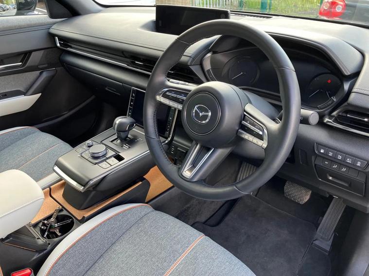 Unleash the future of driving with this superb 2023 Mazda MX-30 Makoto! With just one discerning owner and an incredibly low 9, 993 miles, this modern plug-in hybrid is in pristine condition and ready to impress. This isn't just an efficient car; it's a statement of style and sophistication. The Makoto trim elevates every detail, complementing the innovative 0.8L petrol rotary engine that acts as a range extender for its electric drive, offering a seamless blend of efficiency and confident performance. Drive with absolute peace of mind, knowing your MOT is valid until November 2026. Step inside and discover an array of premium features designed for your ultimate comfort and safety. Luxuriate with heated front seats on those crisp mornings, while the climate control system ensures a perfectly tailored cabin environment for everyone. Advanced LED headlights with auto-levelling provide exceptional visibility, illuminating every curve and corner. Safety is paramount, and this MX-30 goes above and beyond with Emergency Lane Keeping featuring Blind Spot Assist, and Blind Spot Monitoring with Rear Cross Traffic Alert ? systems that actively work to protect you and your passengers on every journey. This Mazda MX-30 truly offers a modern, luxurious, and secure driving experience.