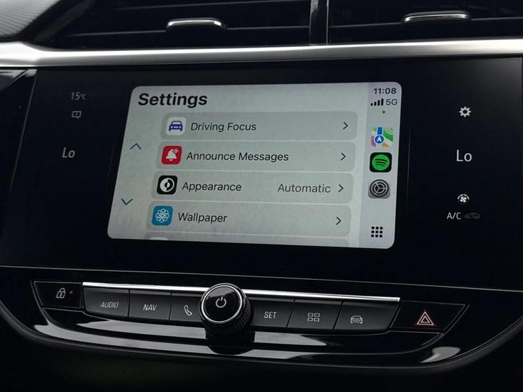 - 3 spoke flat bottomed leather effect steering wheel with satin chrome effect bezel