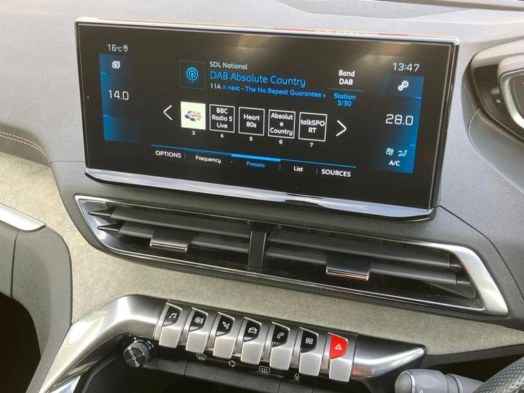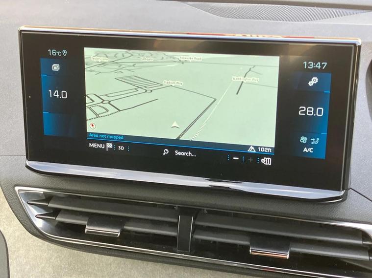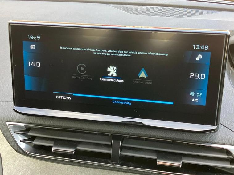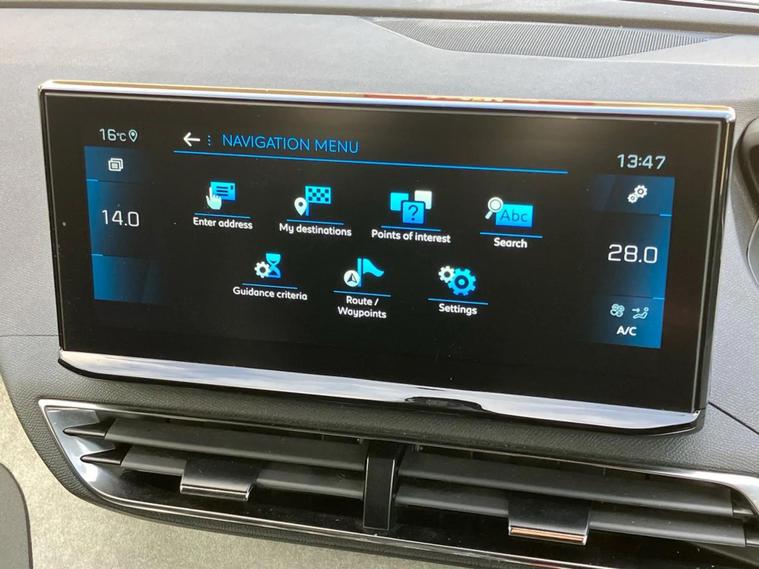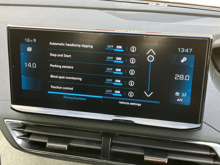- Peugeot i-cockpit with configurable 12.3 headup digital instrumental panel and compact sports steering wheel