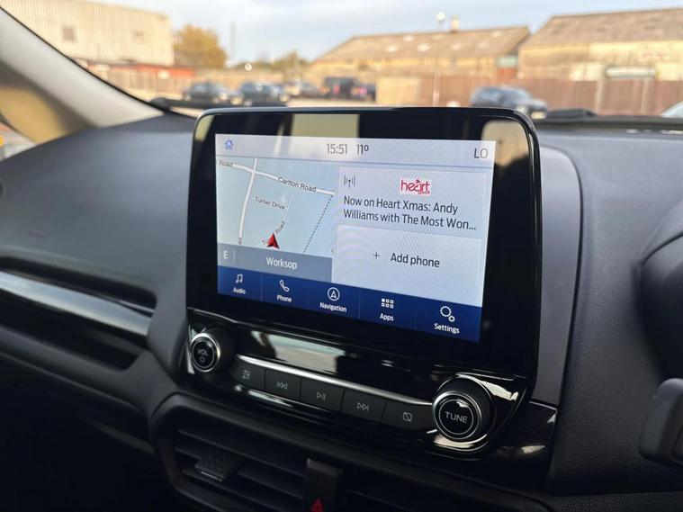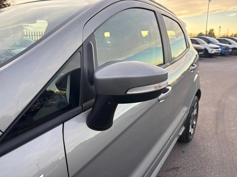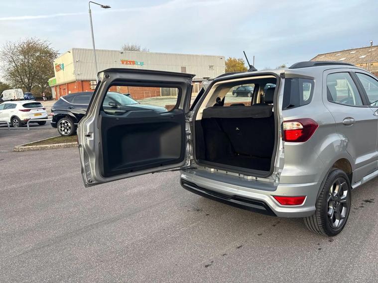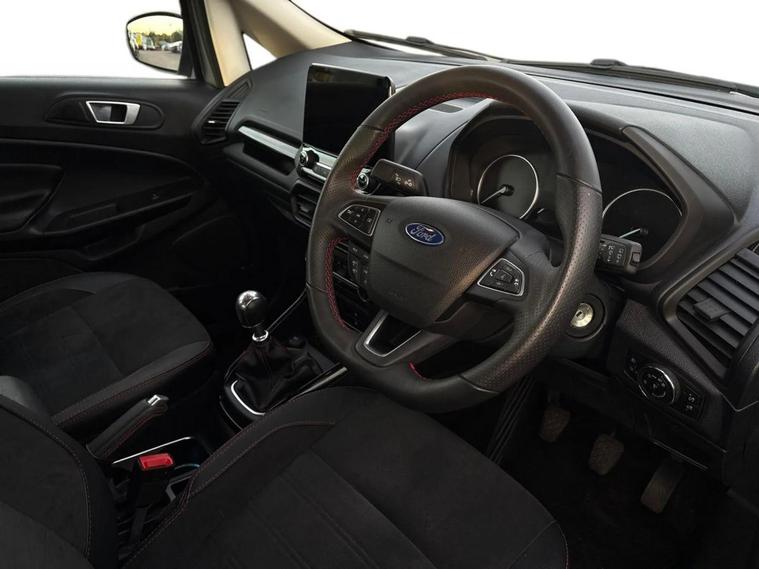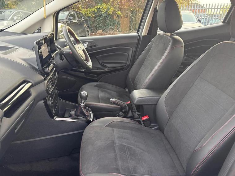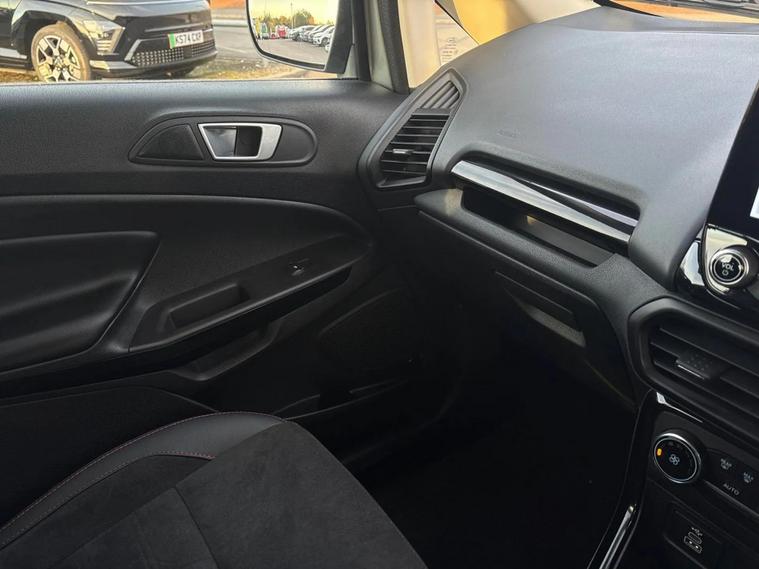 This 2022 Ford EcoSport ST-Line T is a superb example with exceptionally low mileage for its year, having covered just 18, 204 miles. This stylish compact SUV boasts a responsive 1.0L petrol engine and meets Euro 6 emissions standards. For your peace of mind, the MOT is valid until October 2026. This particular model comes equipped with automatic headlights, which illuminate the road ahead without you needing to lift a finger, and rear parking sensors to assist you when manoeuvring into tight spaces. With an impressive fuel economy of 46 mpg, this EcoSport offers an economical driving experience, making it a sensible choice for both city driving and longer journeys. Its low CO2 emissions further contribute to its cost effectiveness and environmental consideration. These highlights demonstrate how this Ford EcoSport ST-Line T stands out from other vehicles in its class, offering a compelling combination of style, practicality, and efficiency.