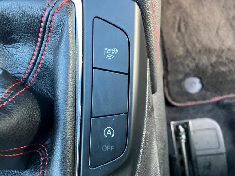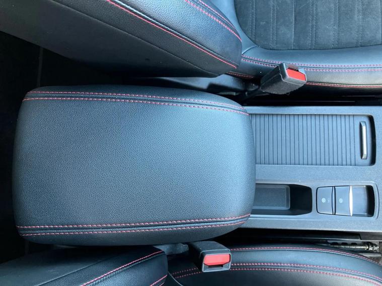 - Partial premium touch sensico leather upholstery with black cloth inserts and red stitching