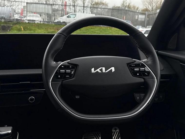 Discover this 2022 Kia EV6 GT Line S, a sophisticated electric vehicle offering an impressive 300 miles of range from its 77 kWh battery. This Four Wheel Drive model combines cutting edge technology with everyday practicality. Inside, you'll find a host of premium features designed for comfort and convenience, including heated front and outer second row seats, a wireless mobile phone charger, and dual LED headlights with adaptive driving beam for enhanced visibility. The 360 degree around view monitor provides complete peace of mind when parking. The Kia EV6 GT Line S stands out with its exceptional performance and efficiency. Its acceleration is remarkable, reaching 0 to 62mph in just 5.2 seconds, demonstrating its dynamic capabilities. For those seeking convenience, a full charge at home using a 7kW charger takes approximately 12 hours and 30 minutes, while rapid public charging can replenish the battery from empty to 80% in as little as 20 minutes. Furthermore, this model boasts a large boot space, offering ample room for luggage or shopping, making it a versatile choice for families and individuals alike.