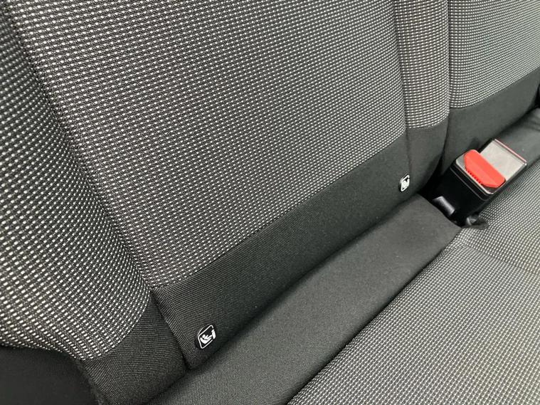 - ISOFIX mounting on outer rear seats with top tether and labels indicating fixing points