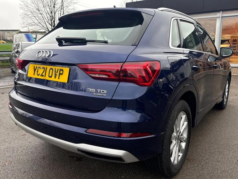 This Audi Q3 TDI Sport from 2021 boasts exceptionally low mileage for its age, having covered just 19155 miles, and has been owned by only one person. This desirable compact SUV features a 2.0 litre diesel engine paired with four wheel drive, ensuring capable performance in various conditions. It meets Euro 6 emission standards and offers a generous towing weight of 2200 kg. The Sport trim includes a Bluetooth interface for seamless connectivity and striking LED headlights with LED daytime running lights, complemented by dynamic rear indicators for enhanced visibility. The Q3 TDI Sport stands out with its impressive fuel economy, achieving up to 48 miles per gallon, which indicates it is more economical than many similar vehicles. Its low CO2 emissions further contribute to its appeal, suggesting lower running costs and environmental impact. Practicality is also a key strength, with ample boot space making it ideal for families or those needing to carry luggage. This combination of efficiency, practicality, and advanced features makes this Audi Q3 a compelling choice.
