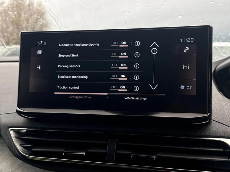 - Peugeot i-cockpit with configurable 12.3 headup digital instrumental panel and compact sports steering wheel