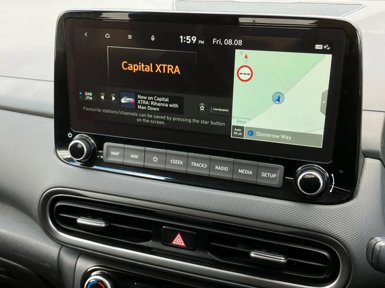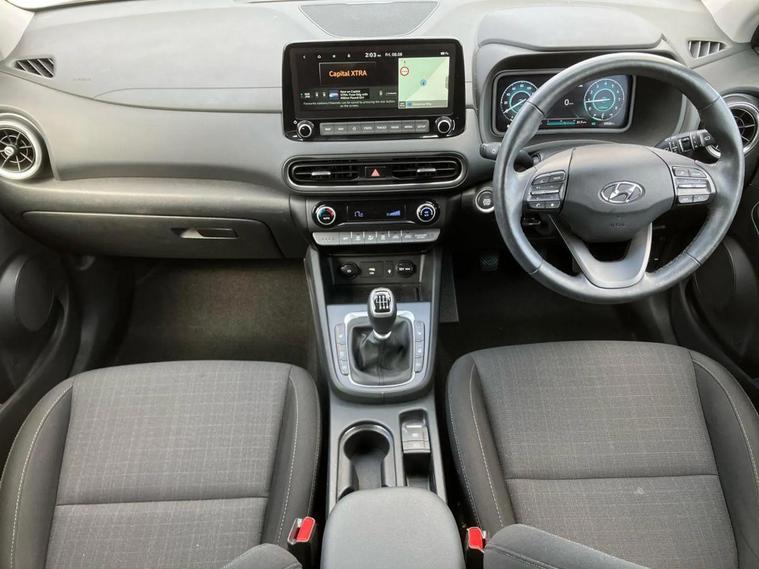 With only 17566 miles on the clock, this 2022 Hyundai KONA is barely broken in. As a Premium trim variant, this KONA is equipped with a 1.0L Petrol Hybrid Engine and meets Euro 6 emission standards. The car has a valid MOT until March 2026, offering peace of mind for miles to come. The Hyundai KONA T-GDi Premium includes a range of features designed for comfort and convenience. Stay connected on the go with Bluetooth, and enjoy the luxury of heated front seats and a heated steering wheel during colder months. The automatic headlights with dusk sensor provide added safety and ease of use, while the wireless phone charging pad keeps your devices powered up without the need for cables. This particular model also benefits from a low insurance group, which can mean lower running costs when compared to similar vehicles, and is a real bonus for new drivers.