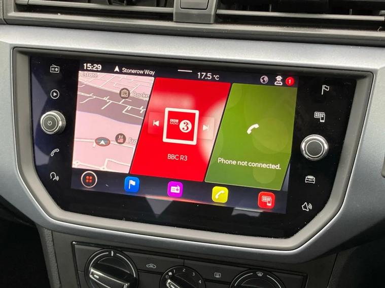 With only 4310 miles on the clock, this 2021 SEAT Arona is barely broken in. This SEAT Arona 1.0L Petrol, in SE Technology trim, combines practicality with modern features. Registered in 2021, this Euro 6 emission class vehicle includes air conditioning to keep you comfortable on every journey. The car has a valid MOT until November 2025, offering peace of mind for the foreseeable future. This Arona stands out with its impressive fuel economy of 48 mpg, meaning fewer trips to the petrol station and more money in your pocket. It also falls into a low insurance group, making it an affordable option for many drivers, especially new or young drivers. Furthermore, its low CO2 emissions mean you'll be contributing less to pollution.