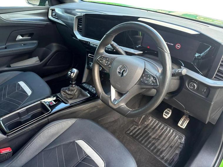 Finished in Iconic Green Metallic Paint with a Part Black Leatherette and a Part Charcoal Cloth Interior. 2 Keys. Full Vauxhall Service History - The next annual service due in March 2026 will also be complete prior to collection. 07/03/2025 at 9, 272 miles - 25/03/2024 at 1, 050 miles. Features include Dual Zone Climate Control, Heated Front Seats, Heated Steering Wheel, Adaptive Cruise Control with Speed Limiter, Automatic Headlights, Rain Sensitive Wipers, Lane Departure Warning System, Lane Keep Assist System, Traffic Sign Recognition System, Smart City Braking System, USB Connectivity, Steering Wheel Audio Controls, Bluetooth, DAB Digital Radio, Apple CarPlay and Android Auto, Satellite Navigation, Rear Parking Camera, Front and Rear Parking Sensors, Power Folding Door Mirrors, Sports Alloy Wheels and Adaptive LED Headlights. A £149 administration fee is applicable to the advertised price upon purchase of this vehicle. Refer to our terms and conditions for details.