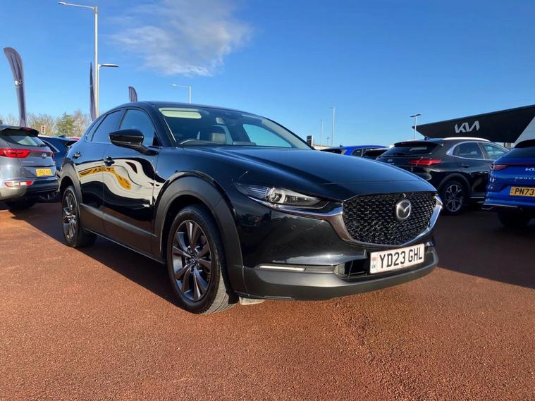 This 2023 Mazda CX-30 e-SKYACTIV X GT Sport Tech boasts exceptionally low mileage for its age, having covered just 10, 138 miles. This Euro 6 compliant 2.0L petrol model comes with an MOT valid until March 2026, offering peace of mind. The GT Sport Tech trim level ensures a premium experience, featuring convenient Smart Keyless Entry, front and rear parking sensors with parking assistance, and Blind Spot Monitoring with Rear Cross Traffic Alert for enhanced safety. Experience the efficiency and performance of this Mazda CX-30, which achieves an impressive 46 mpg, placing it in a low insurance group and highlighting its low CO2 emissions. Its acceleration from 0-62mph in just 8.7 seconds demonstrates its responsive nature. These highlights indicate that this vehicle offers a superior driving experience and cost of ownership compared to many similar cars on the market.