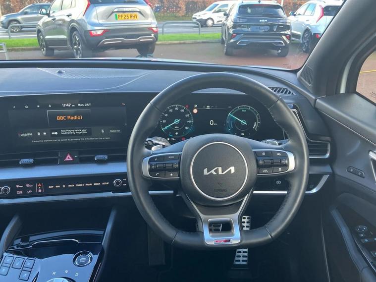 The Kia Sportage GT-Line S is a 2025 model, boasting a 1.6L Petrol Plug-in Hybrid Engine and Four Wheel Drive drivetrain, making it a capable and efficient vehicle. This Euro 6 compliant model has been well-maintained, with Kia warranty coverage until June 2032. The GT-Line S trim comes equipped with a range of desirable features, including Front and Rear Parking Sensors, Dual LED Headlights with Adaptive Driving Beam, a Panoramic Sunroof with Tilting and Sliding Function, a Heated Steering Wheel, and a 360 Degree Around View Monitor. This Sportage is a fantastic example of a vehicle that offers a perfect blend of performance, efficiency, and luxury features. The large boot space is a major advantage, providing ample room for passengers and cargo alike. With its impressive list of standard equipment, including parking sensors, adaptive headlights, and a panoramic sunroof, this vehicle stands out from the crowd. The 360 Degree Around View Monitor is particularly useful, offering a clear view of the vehicle's surroundings, making parking and manoeuvering a breeze. With its low mileage, this Kia Sportage is a great choice for anyone looking for a reliable and feature-packed vehicle.