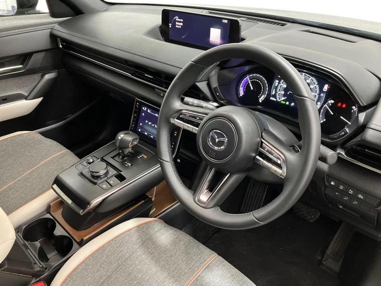 This 2025 Mazda MX-30 Exclusive Line offers excellent peace of mind with its MOT valid until September 2028. This stylish petrol plug in hybrid model, featuring a 0.8L engine, comes equipped with Smart Keyless Entry for effortless access. Safety is enhanced by Blind Spot Monitoring with Rear Cross Traffic Alert, and parking is made simpler with the integrated Reversing Camera. Stay connected on the go with the Integrated Bluetooth system. The Exclusive Line trim level of this Mazda MX-30 showcases a thoughtful selection of features designed to elevate your driving experience. The inclusion of advanced driver assistance systems like Blind Spot Monitoring and a Reversing Camera demonstrates a commitment to safety and convenience, setting it apart from other vehicles in its class. Combined with the practical benefits of keyless entry and Bluetooth connectivity, this MX-30 provides a refined and user friendly ownership proposition.