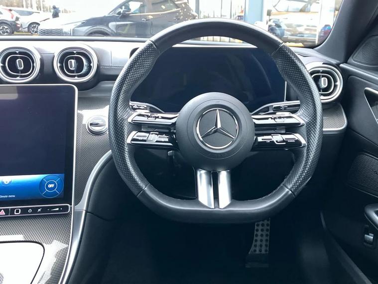 2023 Mercedes Benz C200h AMG Line Premium. This stylish saloon features the sophisticated AMG Line trim and is powered by an efficient petrol hybrid engine, meeting Euro 6 emission standards. Inside, you will find the comfort of heated front seats, and for added safety, it includes Active Blind Spot Assist, which helps to monitor your surroundings. Experience the impressive performance of this C200h, capable of accelerating from 0 to 62 miles per hour in just 7.5 seconds. This swift acceleration, combined with its hybrid technology, demonstrates how this Mercedes Benz offers a more responsive and economical driving experience compared to many other vehicles in its class. The premium specification further enhances its appeal, making it a well equipped and desirable choice.