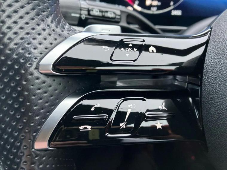- 3 spoke flattened bottom AMG multifunction steering wheel in black nappa leather with chrome inserts and perforated leather in grip area