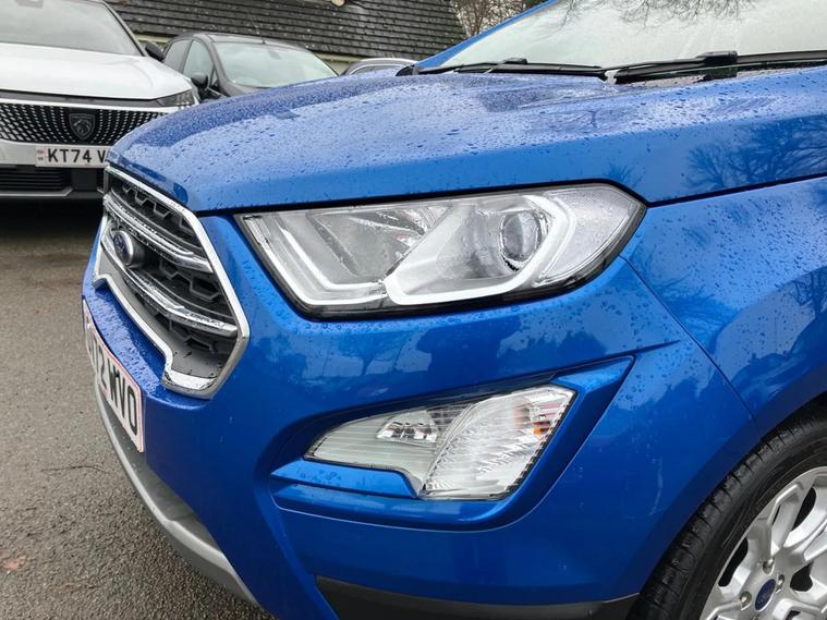 This 2022 Ford EcoSport T Titanium boasts an MOT valid until December 2026, offering you peace of mind for years to come. This stylish SUV is equipped with a responsive 1.0L petrol engine and meets Euro 6 emission standards. For added convenience, it features automatic headlights that switch on when needed and rear parking sensors to assist you when manoeuvring. The Ford EcoSport T Titanium is designed to impress with its fuel economy, which is better than many similar vehicles. Furthermore, its low CO2 emissions highlight its efficiency and environmental consideration. This combination of practical features and economical performance makes the EcoSport a sensible choice for your next vehicle.