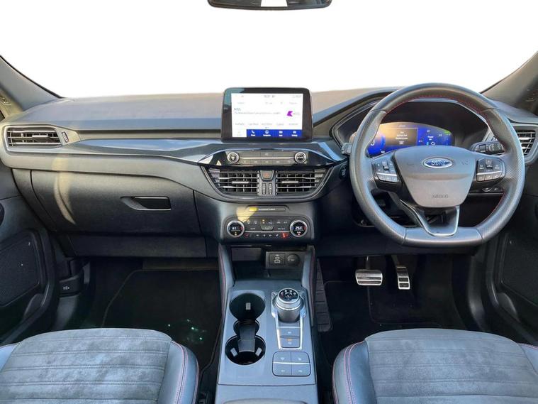 PANORAMIC SUN ROOF + DRIVER ASSISTANCE PACK + WINTER PACK + 1 LOCAL PRIVATE OWNER + FULL PERRYS MANSFIELD SERVICE HISTORY + ++ This 225bhp ST-Line plug in hybrid was supplied brand new by ourselves and has just been taken back in part exchange. 1 local private owner, it has covered only 27k miles and is in excellent condition inside and out. The car has been exceptionally well maintained and comes with a full Perrys Mansfield service history, charging cable, and 2 keys. This car also has factory options fitted including a Panoramic Sun Roof, the Driver Assistance Pack (Front and rear view cameras, Adaptive Cruise Control with Traffic Sign Recognition, Blind Spot Information System (BLIS), Active Park Assist, and door edge guards), and the Winter Pack (Heated Front Seats and Heated Steering Wheel). Serviced here at Perrys Mansfield in October 2024 @ 15k miles, Oct 25 @ 25k, and with 2yr/18k intervals, the next service will not be due until October 2027 or 43k miles, whichever comes first ++ The Ford Kuga Plug-in Hybrid (PHEV) combines a battery powered electric motor with its 2.5-litre Duratec petrol engine ? delivering a combined power output of 225 PS, together with outstanding fuel economy and CO2 emissions figures of just 32g CO2/km (WLTP). For added peace of mind, the hybrid battery comes with an 8-year or 100, 000 miles warranty (whichever comes first). A choice of electric vehicle (EV) modes means you can decide whether to run your Kuga PHEV on power fro...