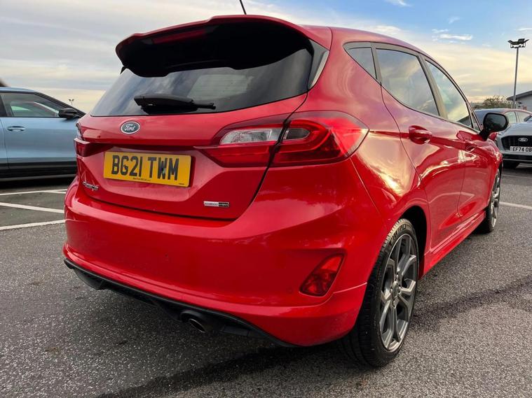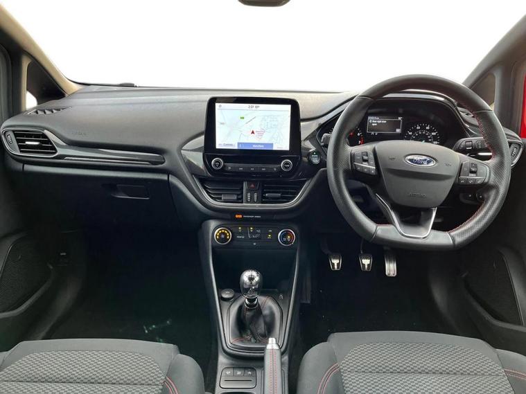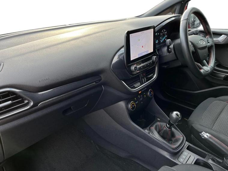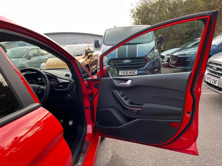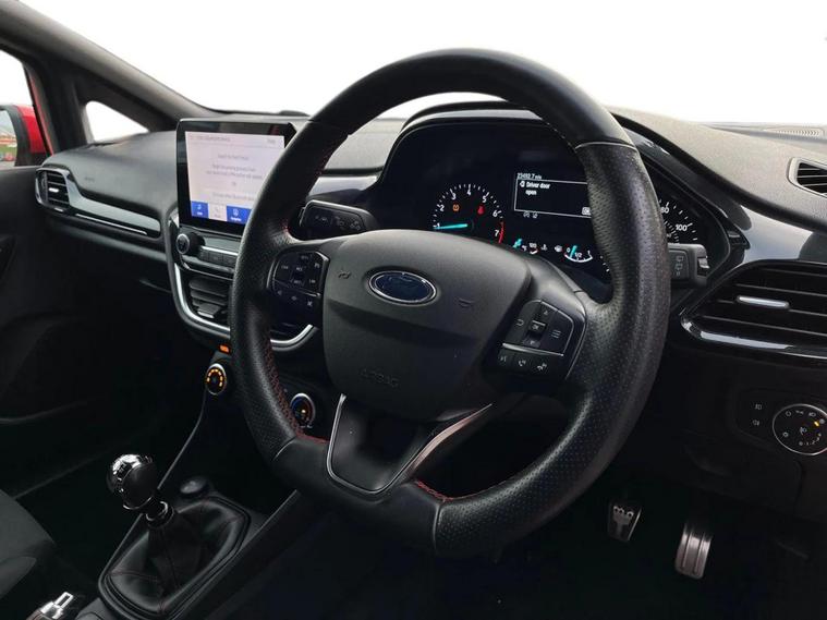 FULL SERVICE HISTORY + 125bhp HYBRID + LOW MILES ++ This ST-Line hybrid has just been taken in part exchange and has covered only 23k miles from new. As you would expect with such low miles, it is in excellent condition inside and out. The car has been exceptionally well maintained and comes with a huge list of features, a full service history and 2 keys. It was serviced in July 2023 @ 6k miles, Dec 24 @ 15k, and with 2yr/18k intervals, the next service will not be due until December 2026 or 33k miles, whichever comes first +++ The Fiesta is now more efficient than ever. Its advanced EcoBoost Hybrid system is designed to minimise emissions and support the petrol engine with extra power when needed. And self-charging technology means the hybrid battery recharges as you drive. The EcoBoost Hybrid engine uses a small electric motor with a 48-volt battery to improve efficiency. Instead of driving solely on electric power, the electric motor provides torque assistance to the petrol engine when needed. It also uses regenerative braking technology, which charges the mild hybrid's battery by capturing energy that?s usually lost when you slow down. This helps increase your fuel economy and reduce emissions +++